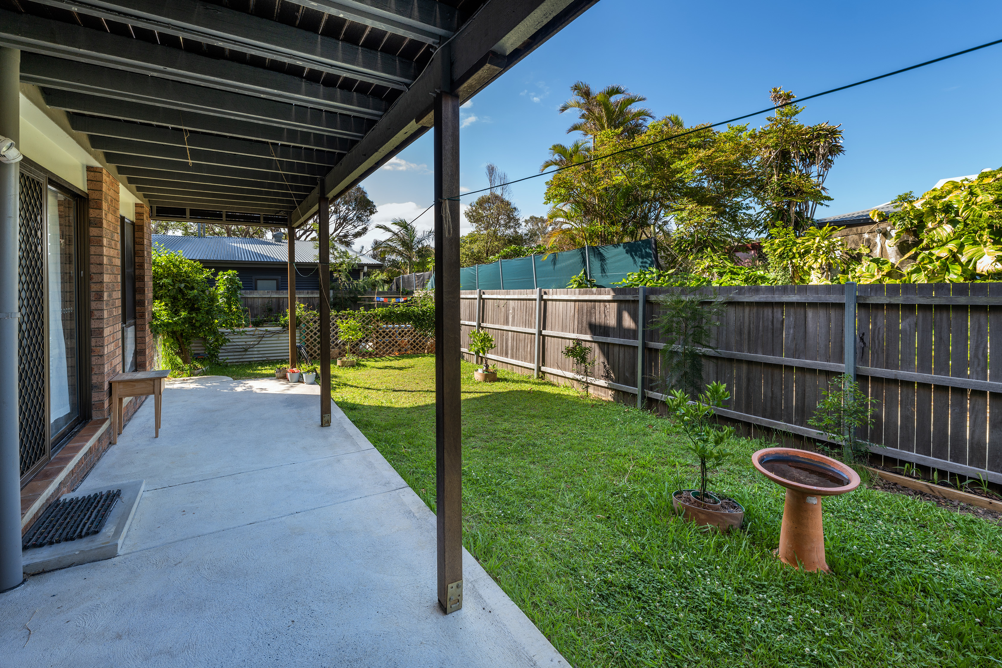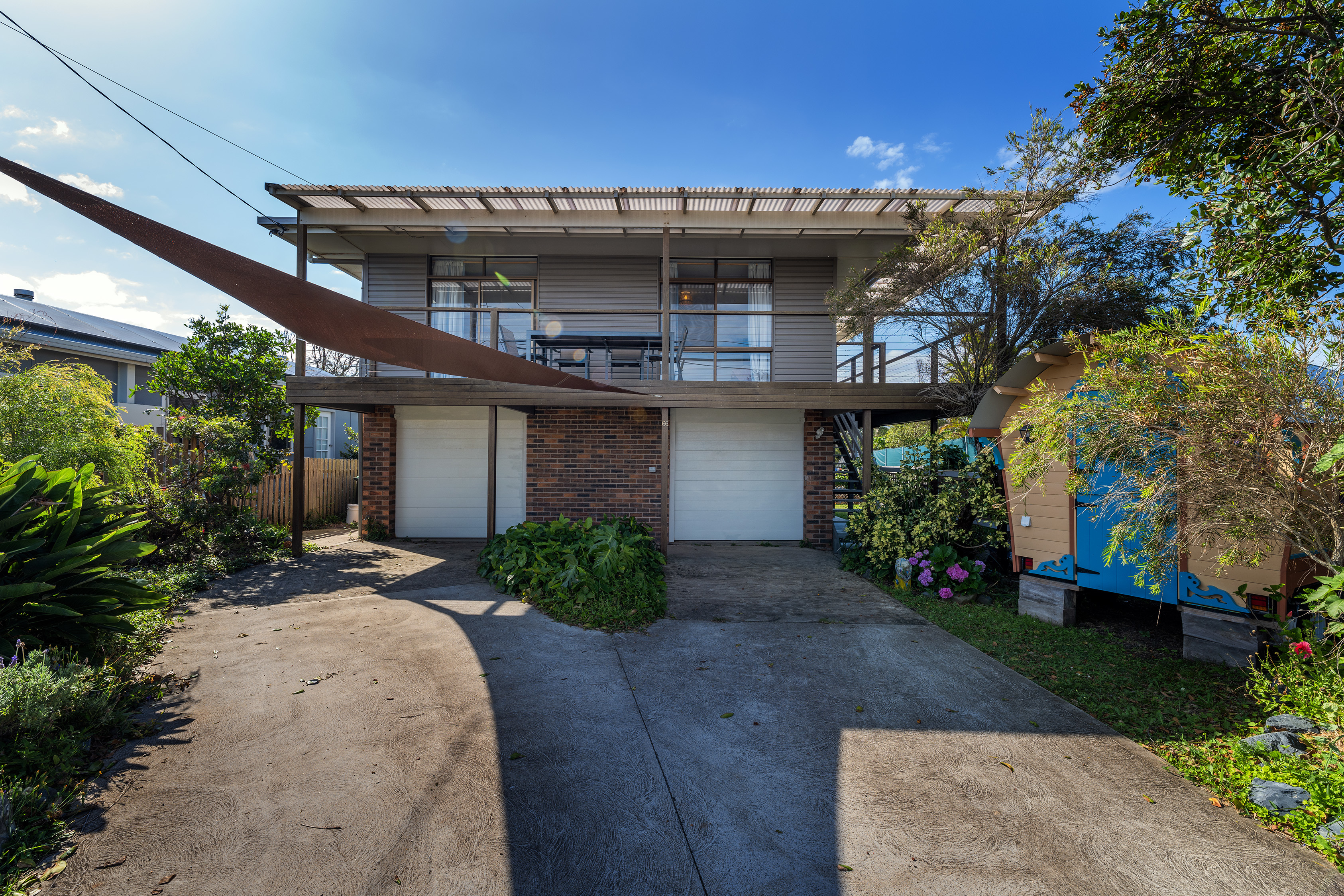There are two lockup garages and a third shade sail car space.
