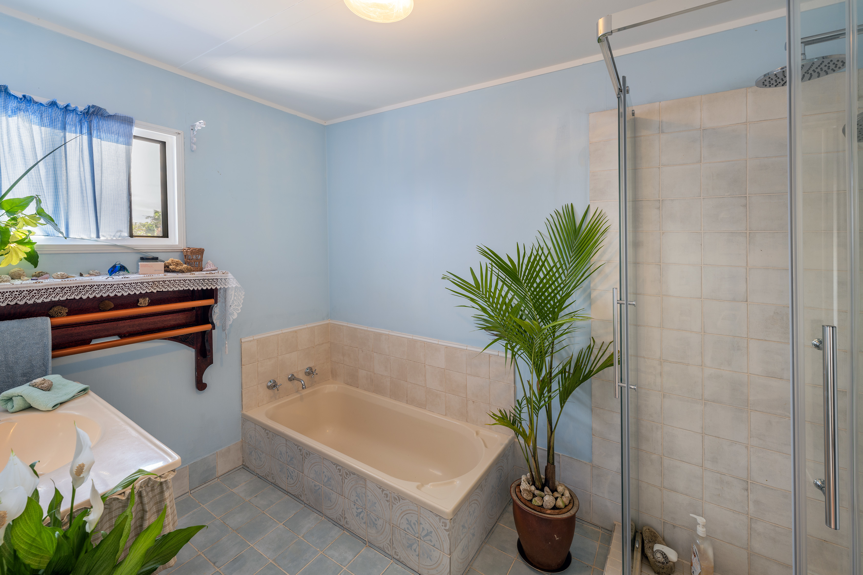 The main house upstairs has a spacious open plan lounge and dining area where ocean views and breezes are a real treat. The large surrounding veranda is a perfect spot for alfresco dining and entertaining or just to relax and capture the sunrise and sunset bliss. It hosts a spacious kitchen, 2 large bedrooms, bathroom with bath and separate toilet.