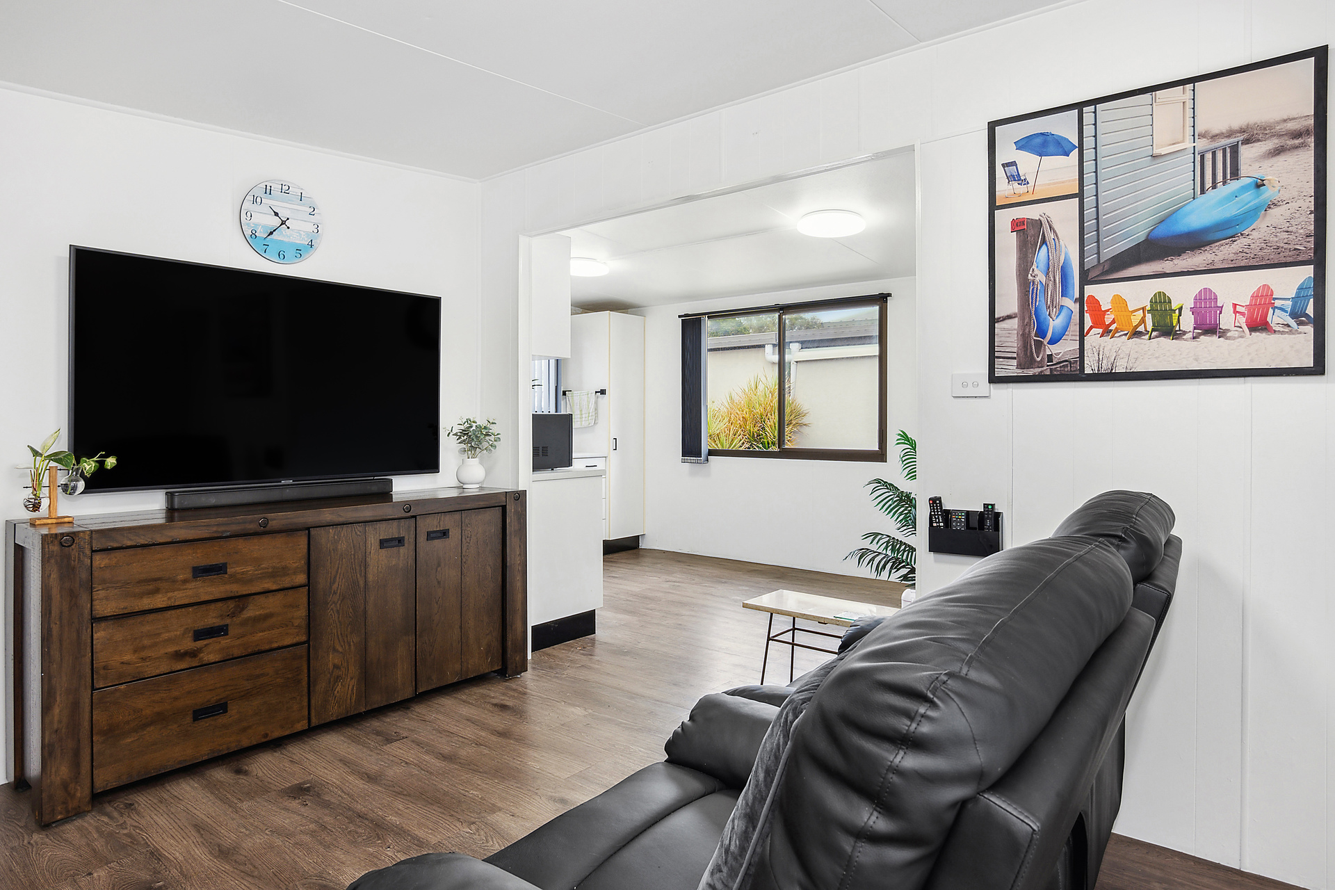 - Low maintenance property in Sunset Caravan Park - Recently updated bathroom for modern living - Well-appointed kitchen with near-new appliances - Comfortable floating boards throughout - Rare single lock-up garage available - Ceiling fans in living room and main bedroom - Air-conditioning in the main living area - Cladded timber exterior with a durable tin roof - Close proximity to beach, cafes, and shops